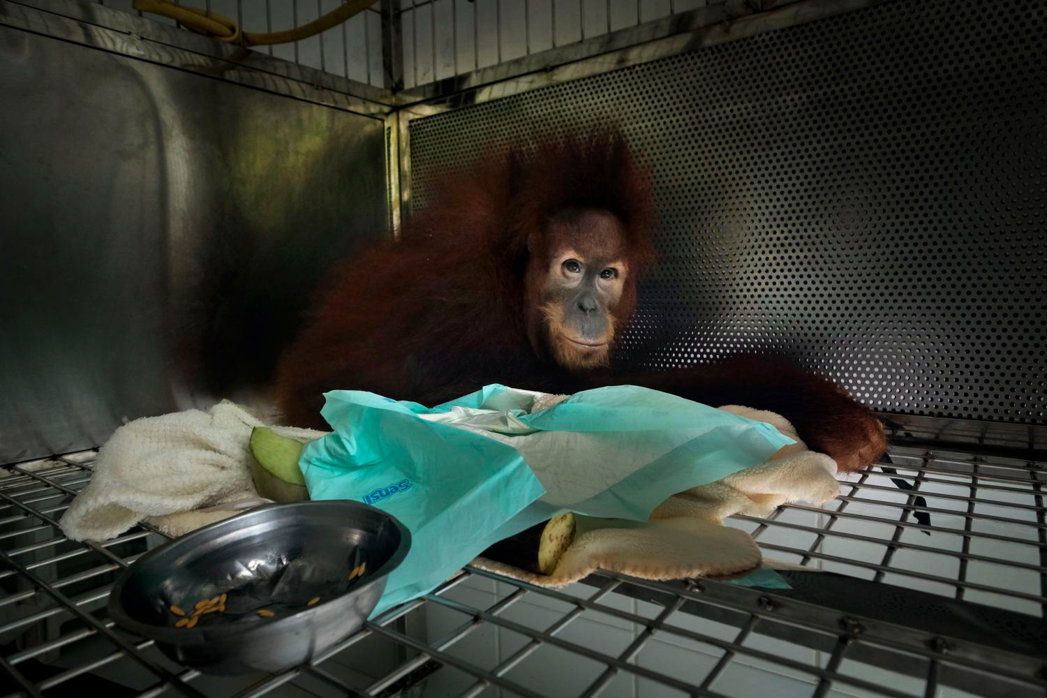 (click on the picture to see more images and then click miniatures to enlarge the photos) Indonesia’s Sumatran orangutan is under severe threat from the incessant and ongoing depletion and fragmentation of the rainforest. As palm oil and rubber plantations, logging, road construction, mining, hunting continue to proliferate, orangutans are being forced out of their natural rainforest habitat. Some organizations rescue orangutans in difficulty (lost, injured, captive...) while others like the SOCP (Sumatran Orangutan Conservation Programme) cares for, rehabilitates and resocializes orangutans at their purpose-built medical facility. These pictures shows them in their daily life in the clinic and quarantine center while saving orangutans lives with the final goal to reintroduce them into the wild and to create genetically viable populations in protected forests. . Published in National Geographic Holland/Belgium edition. The series has been awarded two 1st Prize World Press Photo in 2020 in Nature Stories category and in Nature Single category, and in 2020, 1st Prize single at POYI (77th) in Science and Natural History category.